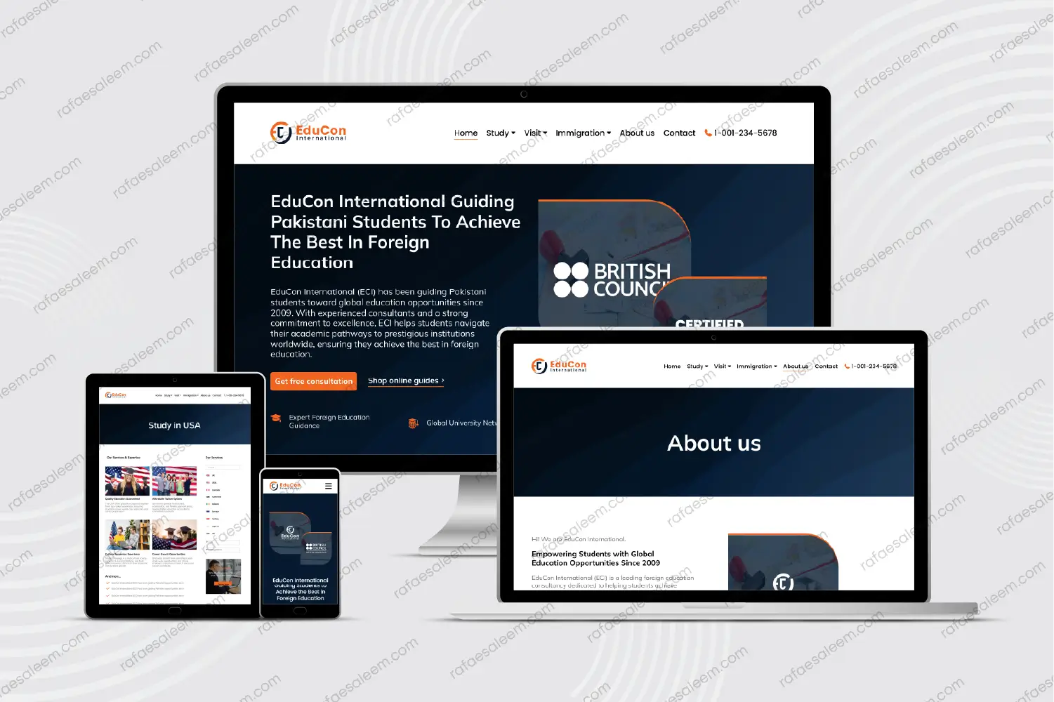 EduCon International is a foreign education and student visa consultancy developed for the Pakistan market. It helps students plan and prepare for studying abroad by providing trustworthy guidance, support, and detailed information about educational opportunities in multiple countries. The platform presents EduCon as a credible partner for students aiming to pursue higher education internationally.