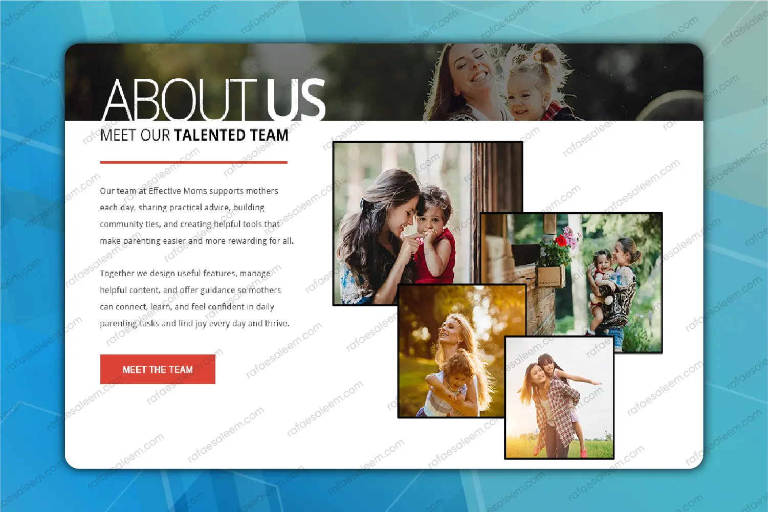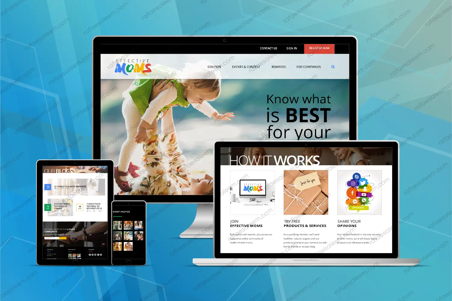 The web application is fully responsive across desktop, tablet, and mobile devices and features a modern, fast-loading design for smooth usability. By combining social networking, content sharing, and business support, Effective Moms creates a complete online ecosystem. It allows mothers in the United States to connect, learn, share, and grow in a supportive, engaging, and interactive community.