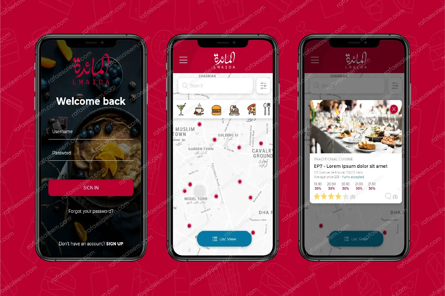 Lmaida is a web and mobile platform developed for the Moroccan market to simplify restaurant discovery, table reservations, and administrative management. The platform allows customers to search for restaurants by category, distance, and special offers. Users can view detailed restaurant pages, including available time slots, menus, promotions, and customer reviews, making it easier to choose the best dining experience based on personal preferences.