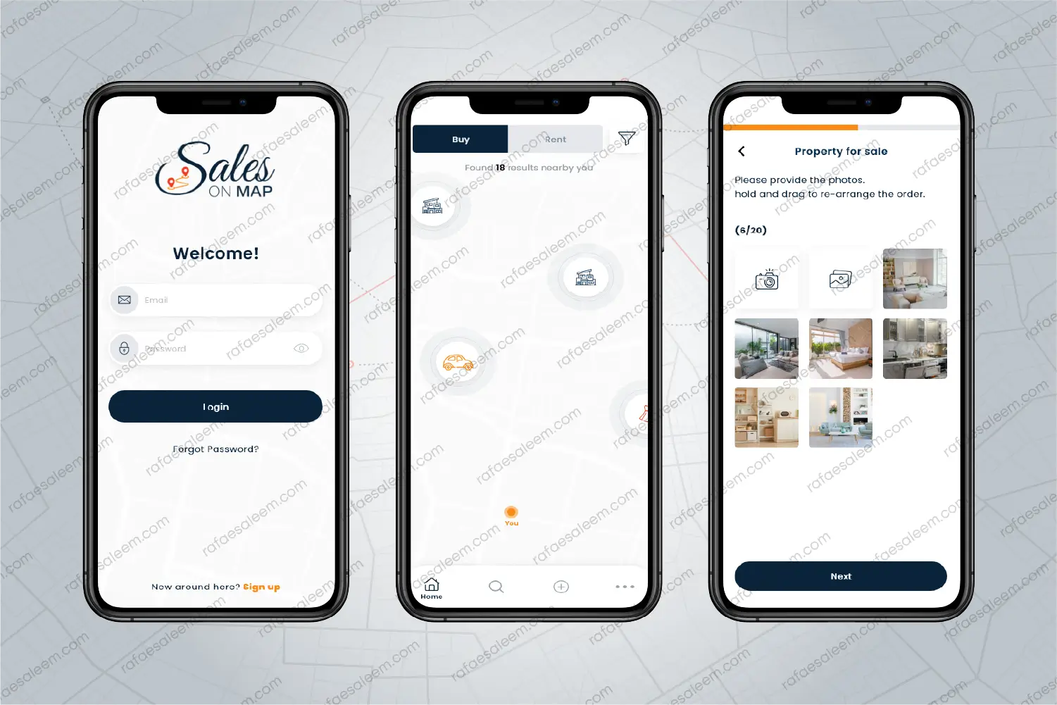 Sales On Map is a location-based marketplace mobile application developed for the United States market. It allows users to buy, sell, and rent properties, vehicles, and everyday items such as furniture, electronics, and stationery directly from an interactive map interface. The platform is designed to provide a simple and fast way to explore nearby listings while giving sellers an easy method to manage their items and reach local buyers.